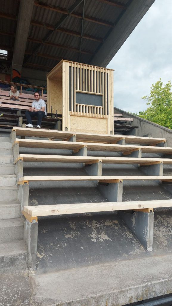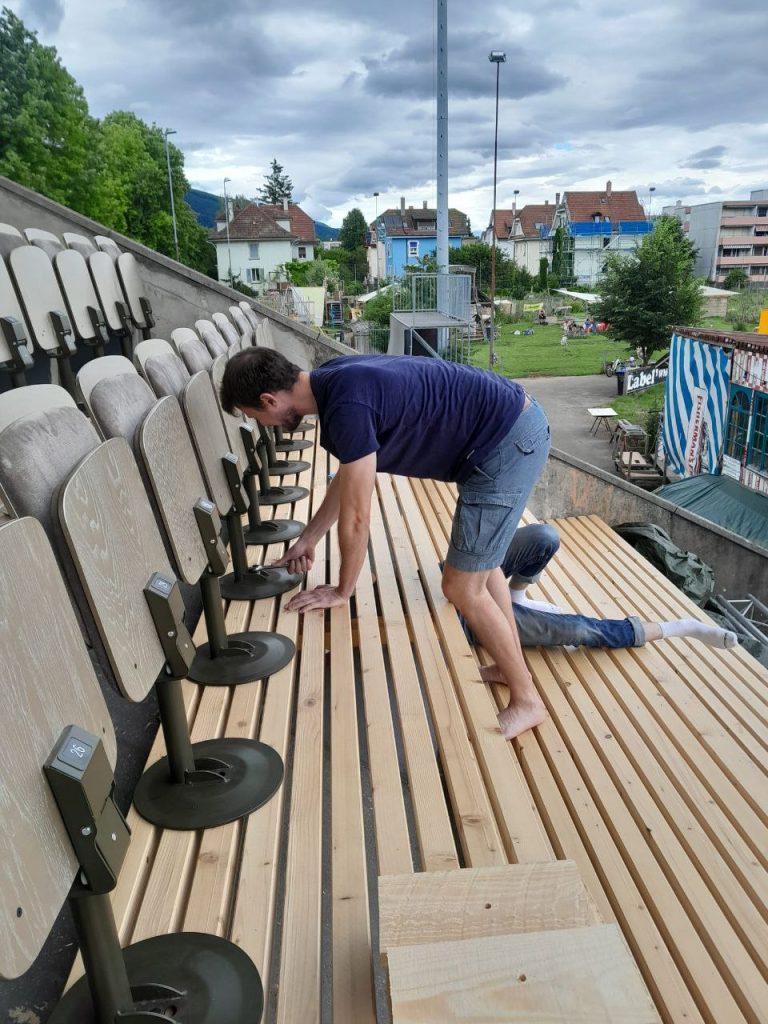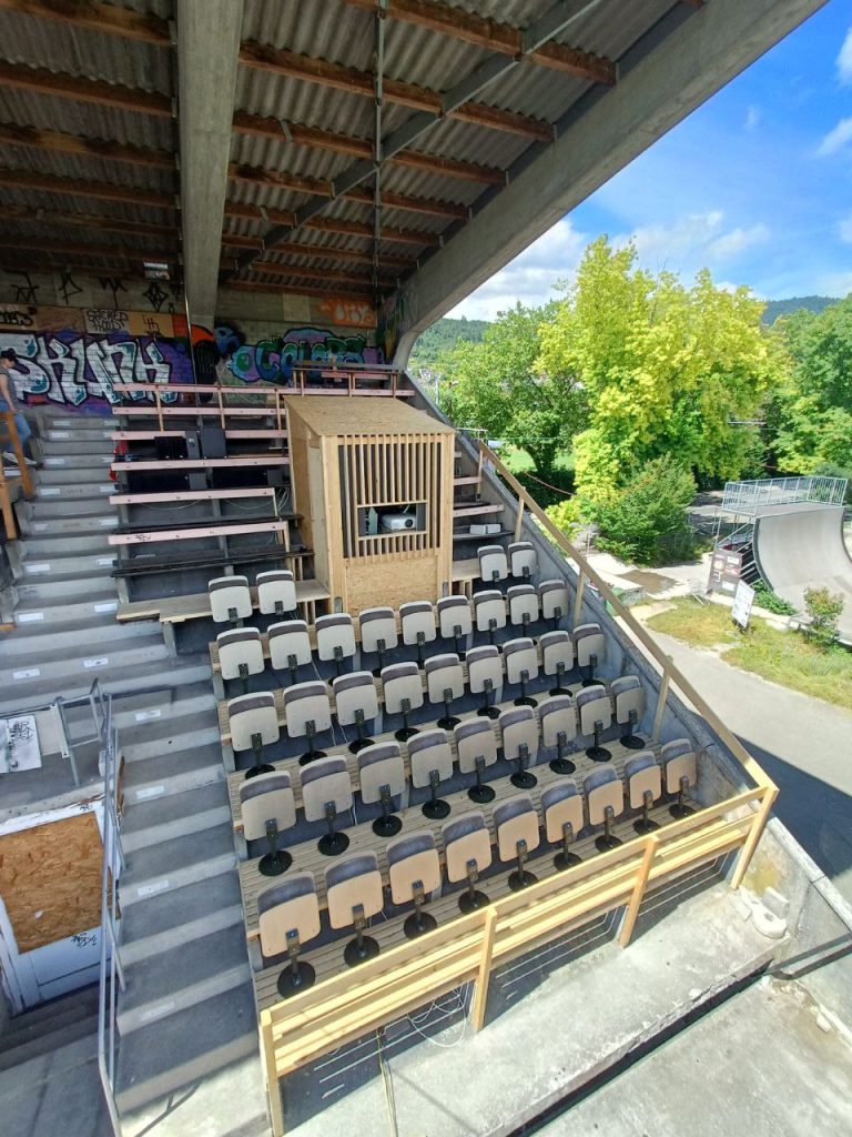 Wo möglich verwenden wir bereits gebrauchtes Material, nach dem System der Kreislaufwirtschaft und dem Cradle-to-Cradle Prinzip. Somit konnten wir bereits die Leinwand des ehemaligen Kino Uto in Zürich ergattern, sowie Stühle aus dem Tonhalle-Provisorium auf dem Maag Areal und etliche 35mm Filmrollen von privaten Sammlungsauflösungen.